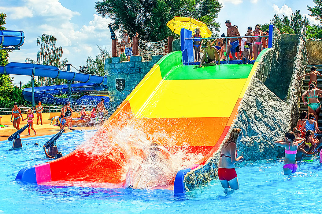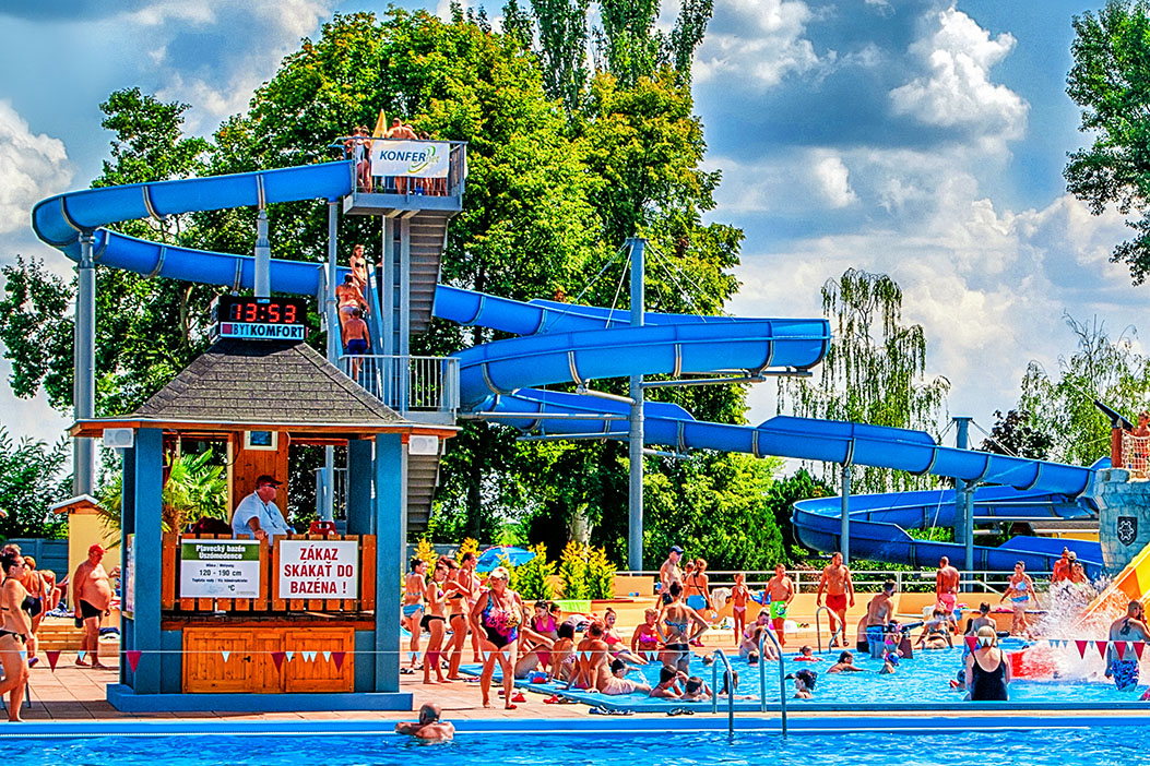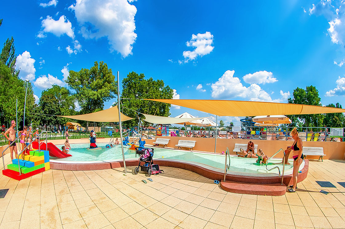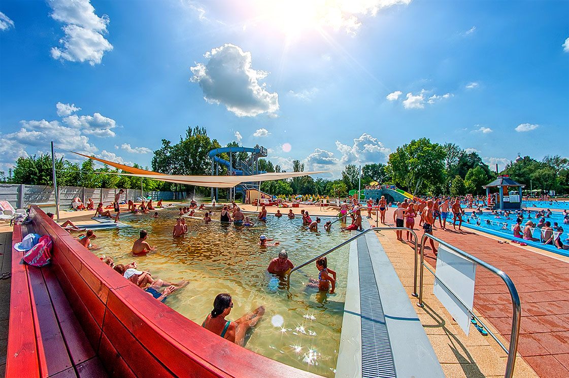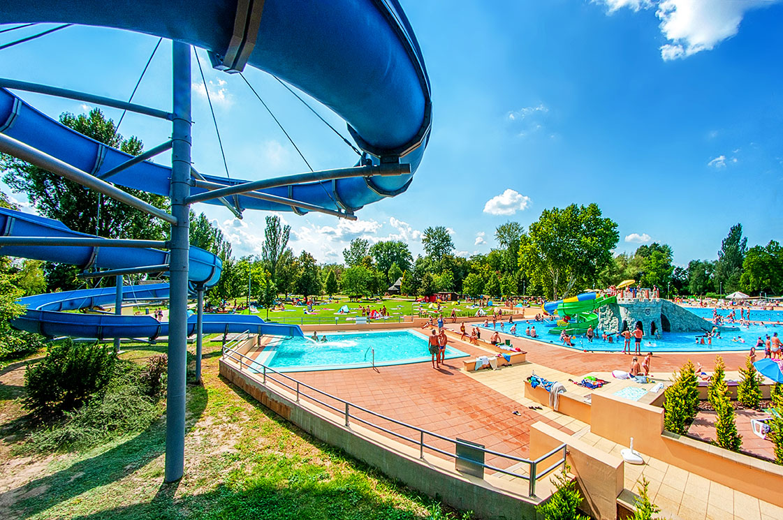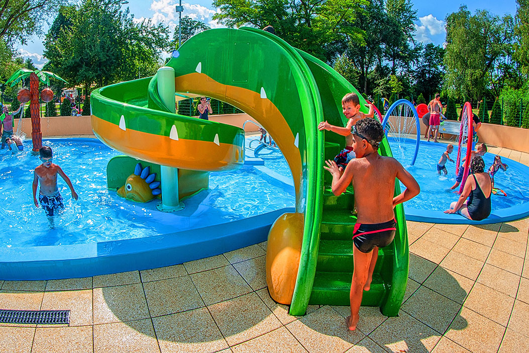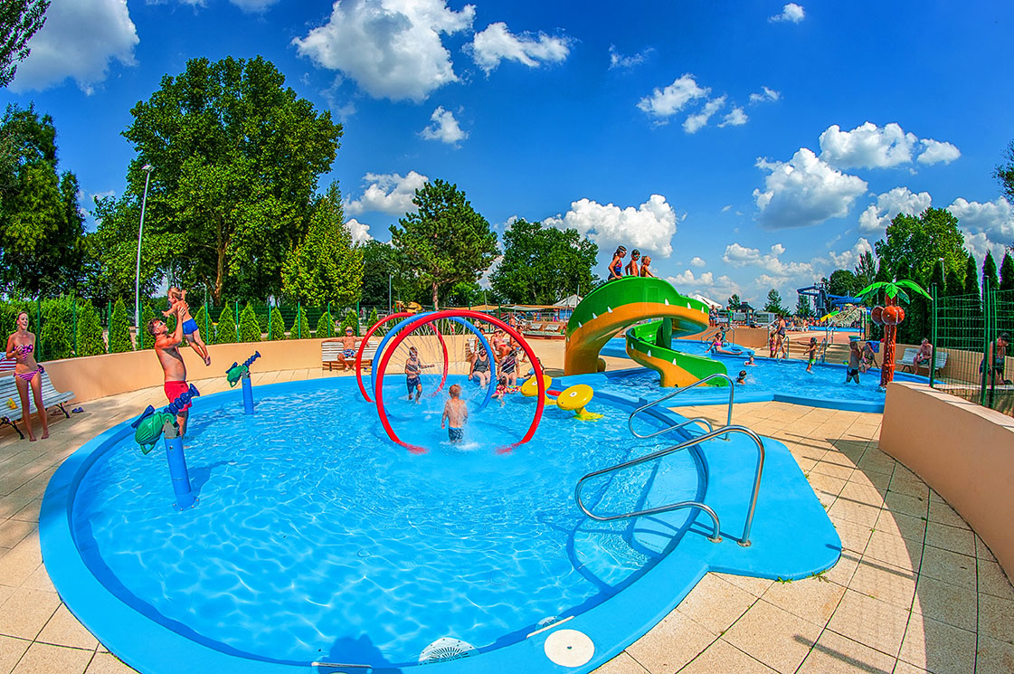 S rozlohou osem hektárov a 9 bazénmi je rajom pre všetkých milovníkov vody. Ak túžite po vzrušení a nových zážitkoch, nájdete tu aj zážitkový bazén s vodným hradom, tobogánmi a vodnými efektmi. Ale to nie je všetko! Perličkový bazén vás očarí svojou jedinečnou atmosférou. S chrličom vody, 12 párov vysokotlakových trysiek a perličkovým kúpeľom vás poteší pri teplote vody 32°C.